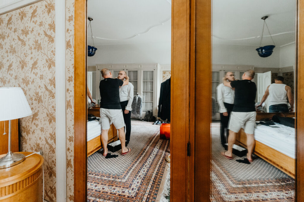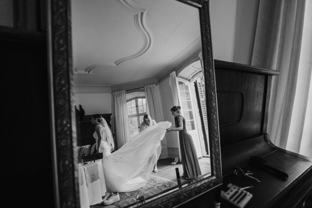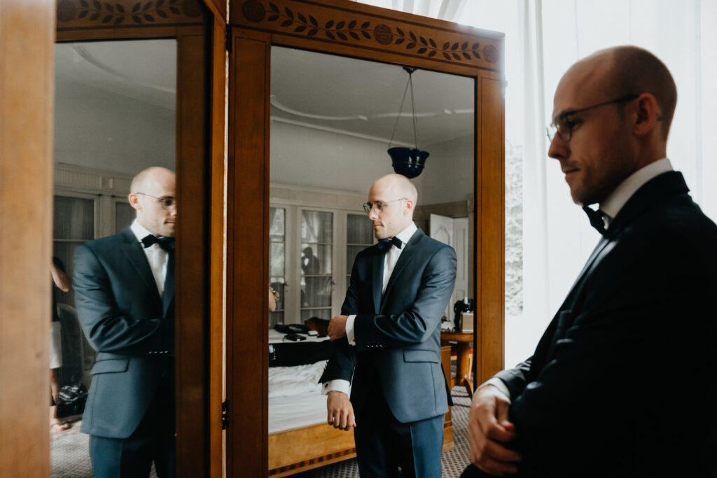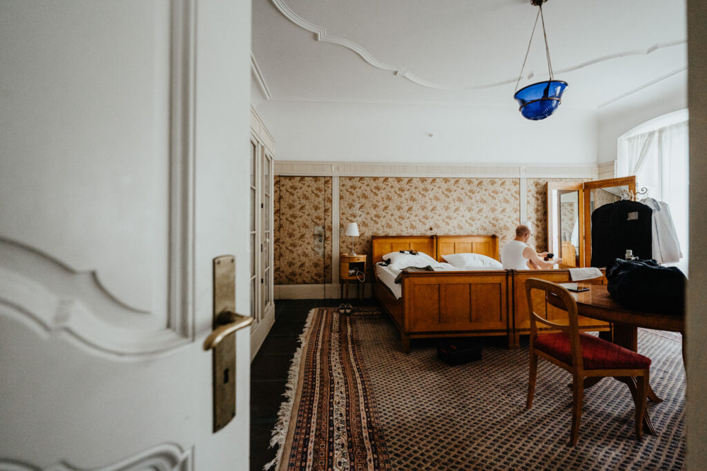 Julia & Kevin haben sich entschieden, das Getting Ready in Schloss Hackhausen zu machen. Dafür eignet sich Schloss Hackhausen sehr gut mit so vielen schönen Räumen.