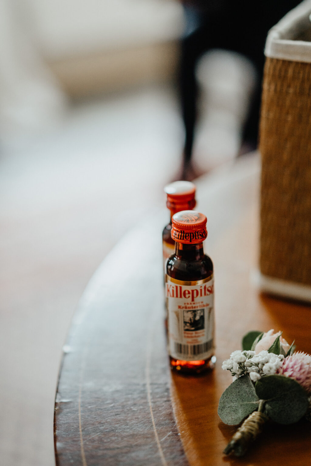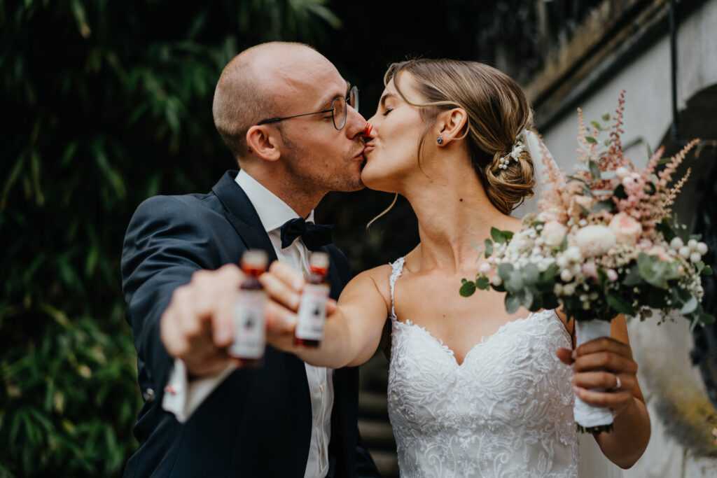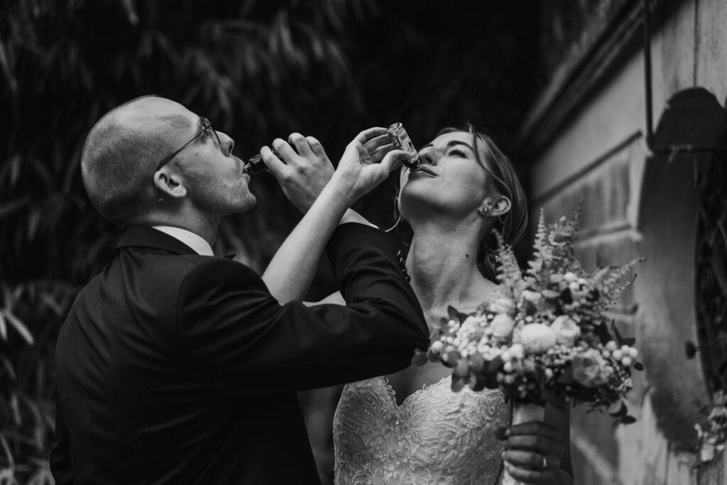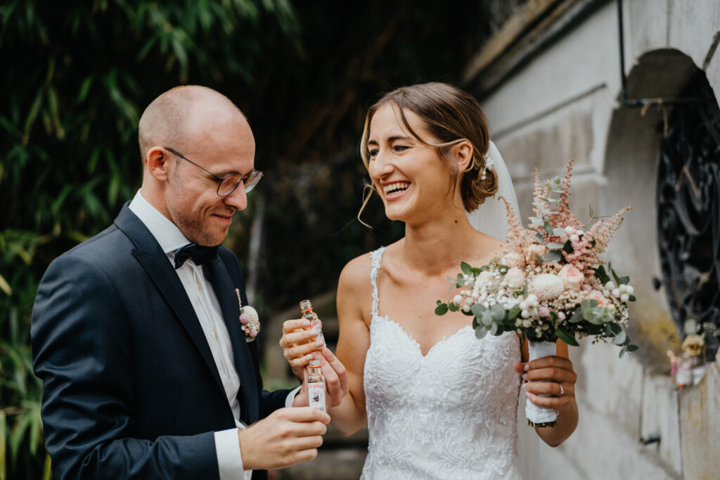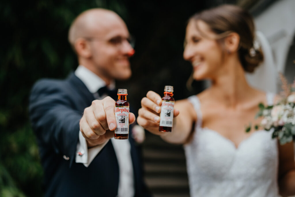 Das Brautpaar hat sich noch zwei kurze mitgenommen, angestoßen und ein bisschen Mut angetrunken.