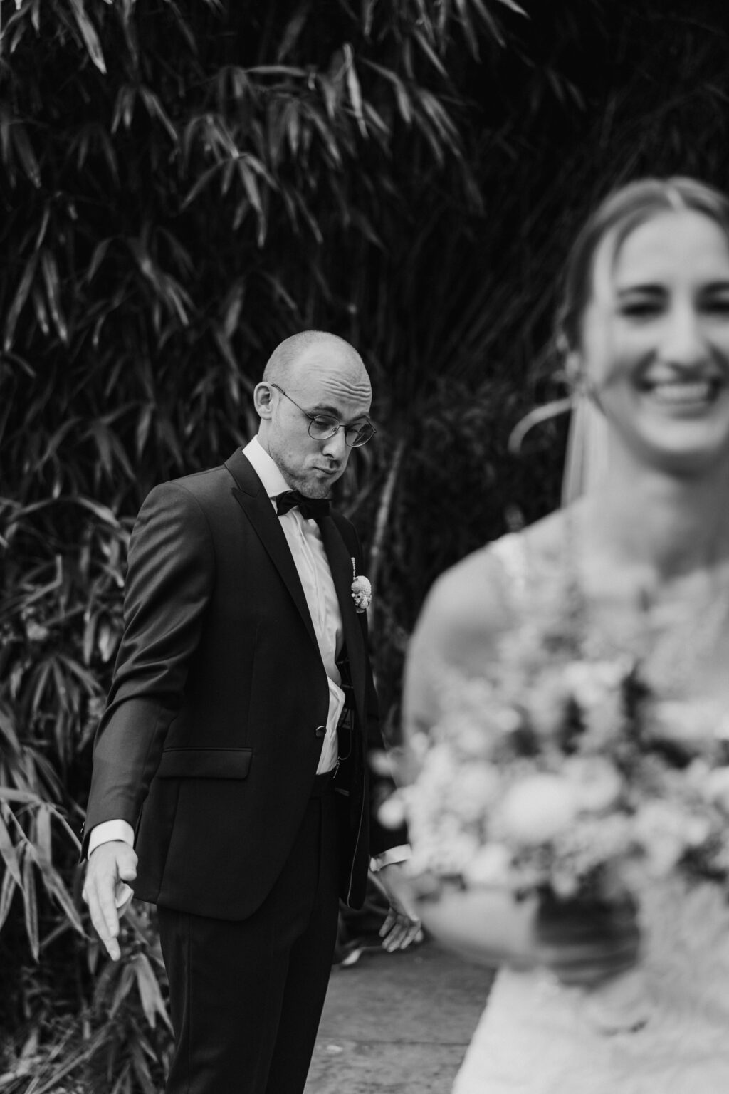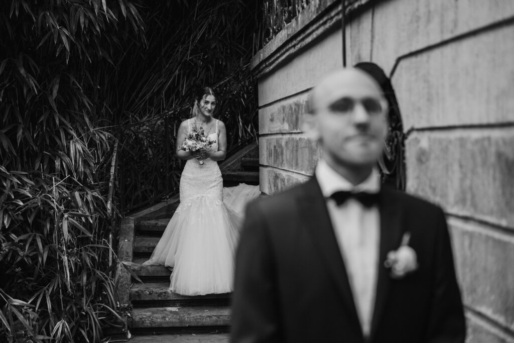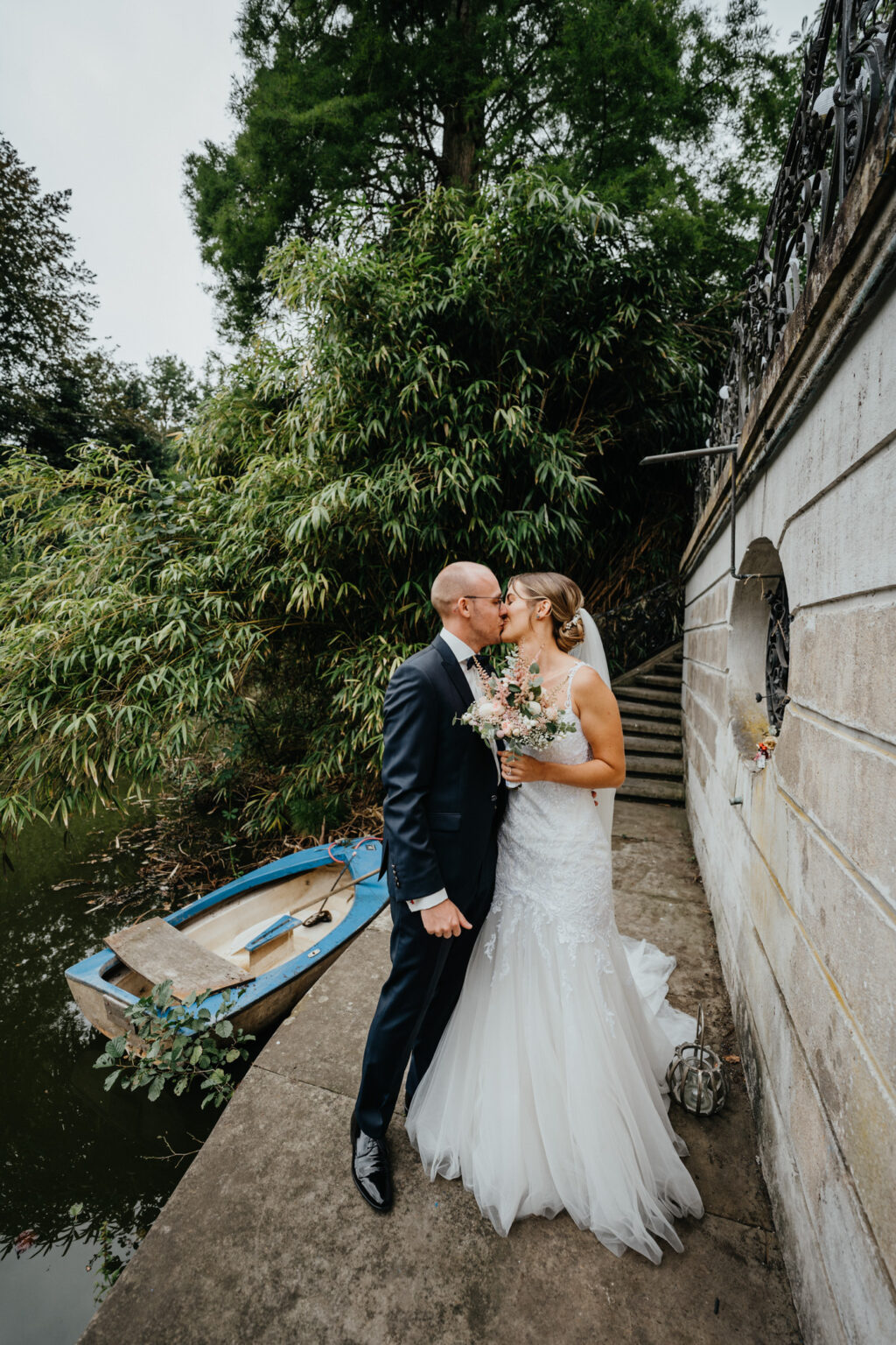 Die zwei haben sich für ein First Look Shooting entschieden also bin ich mit Kevin auf die Terrasse gegangen und diesen kleinen Steg gesehen. Perfekter Ort für “das erste Sehen”. Nur ich sollte etwas aufpassen sonst lande ich im Wasser.