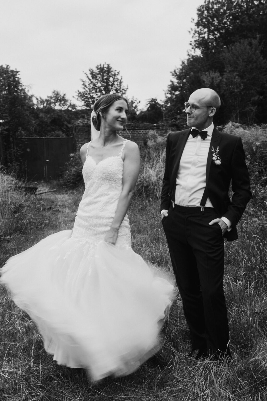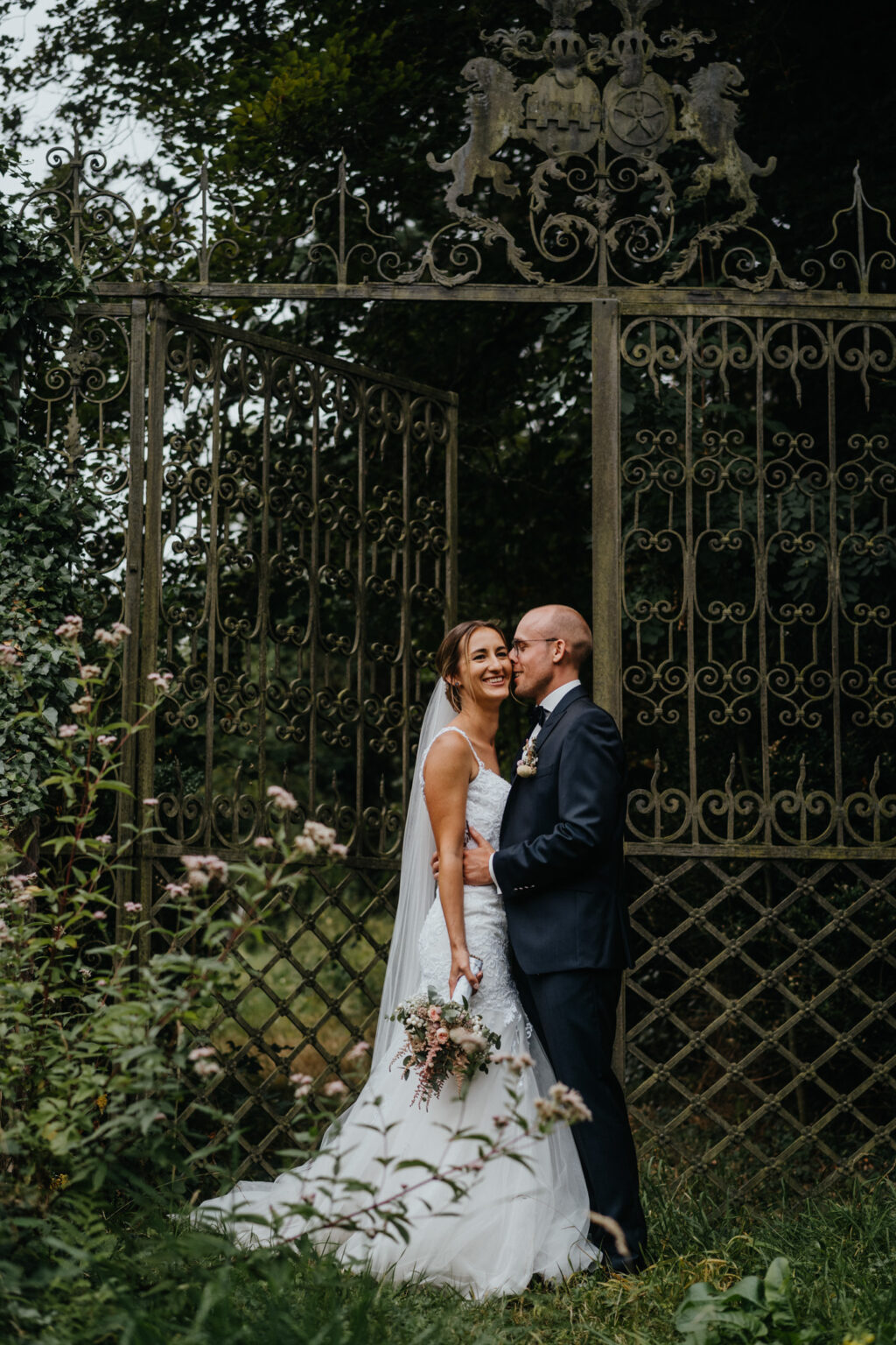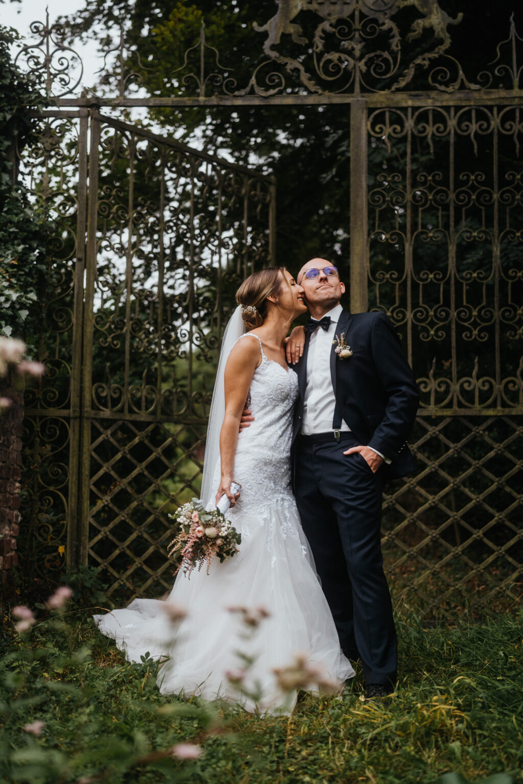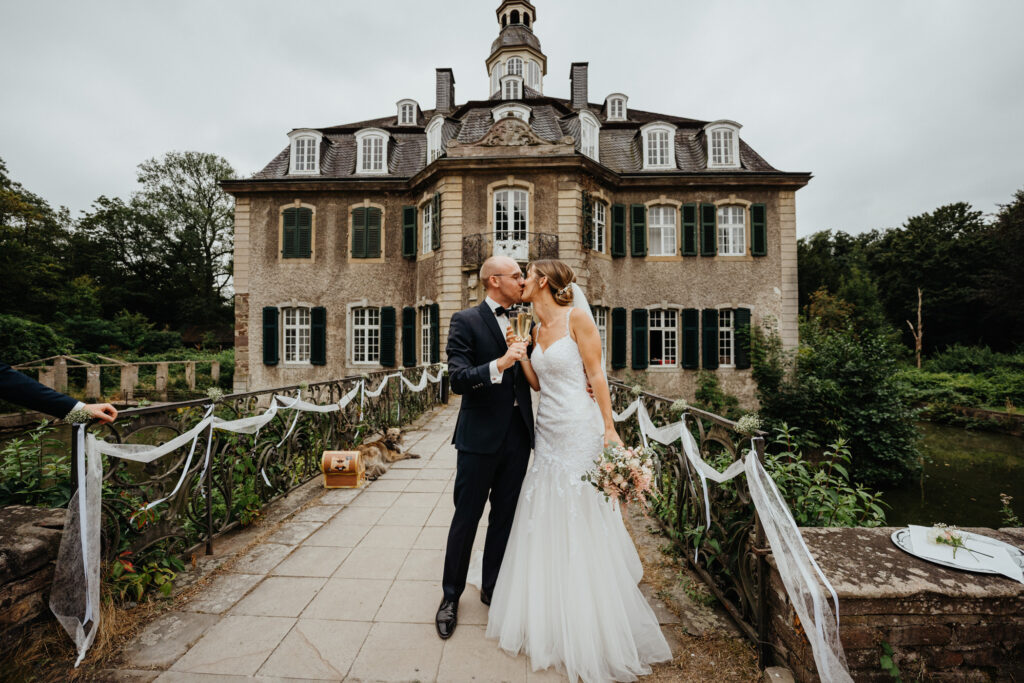 Dann kam die Zeit für das Brautpaarshooting. Dafür sind wir hinter das Schloss Hackhausen ein bisschen spazieren gegangen. Hierfür rechne ich grob mit 30 min, so vermissen euch eure Gäste nicht allzu sehr.
