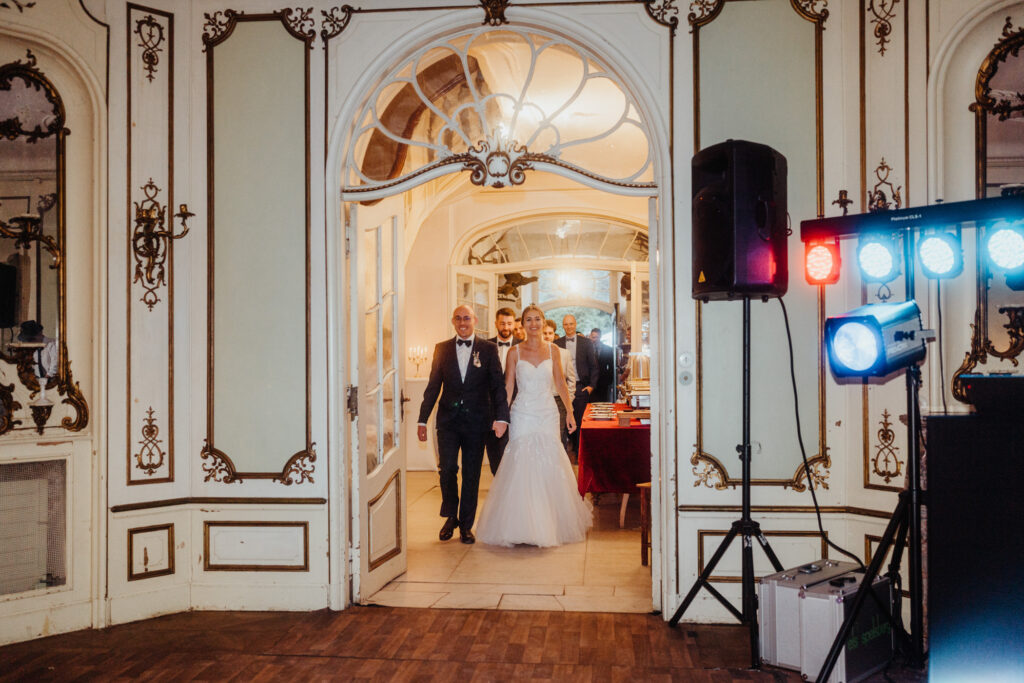 Als alle Gäste Platz genommen haben und der Sänger losgelegt hat, kam Julia mit ihrem Papa aus dem Schloss und ich weiß nicht wer mehr von den beiden gestrahlt hat.